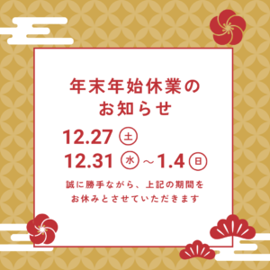 年末年始の営業について